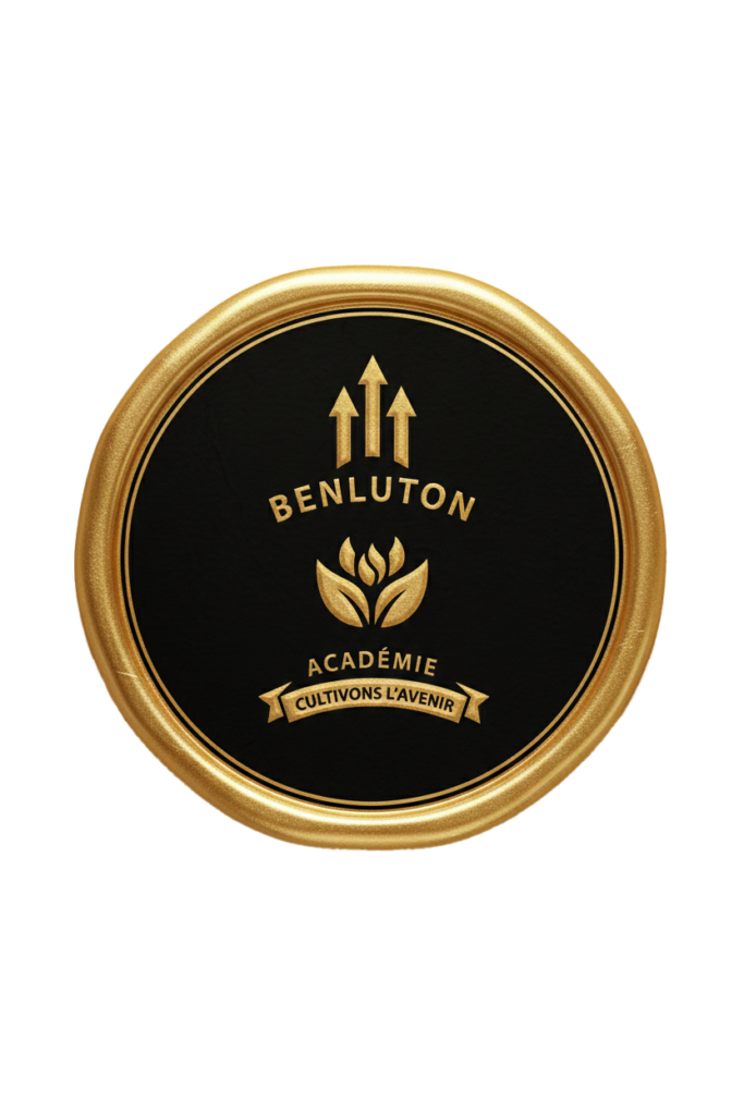 L’introduction de ce projet ne serait pas complète sans expliquer le choix de son esthétique. Le noir, couleur de l’élégance, de la profondeur et du mystère, représente le potentiel inexploité. Le doré, lui, est la couleur de la réussite, de l’excellence et de la valeur ajoutée que BENLUTON apporte. Les flèches ascendantes ne sont pas de simples vecteurs de direction ; elles sont le symbole d’une ascension collective. Le logo circulaire, que nous avons peaufiné ensemble, est le sceau de cette alliance entre tradition (la forme circulaire du sceau) et modernité (le design épuré).